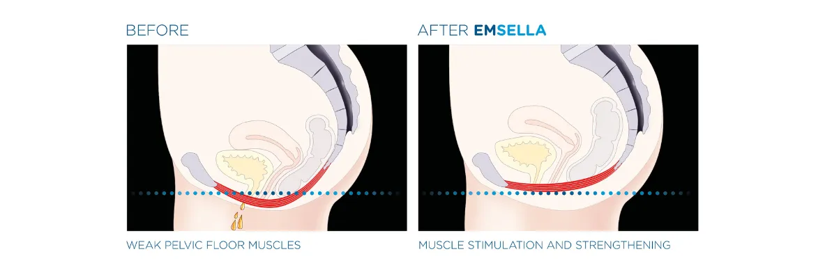 Emsella uses high-intensity focused electromagnetic energy (HIFEM) to strengthen the pelvic floor fast.