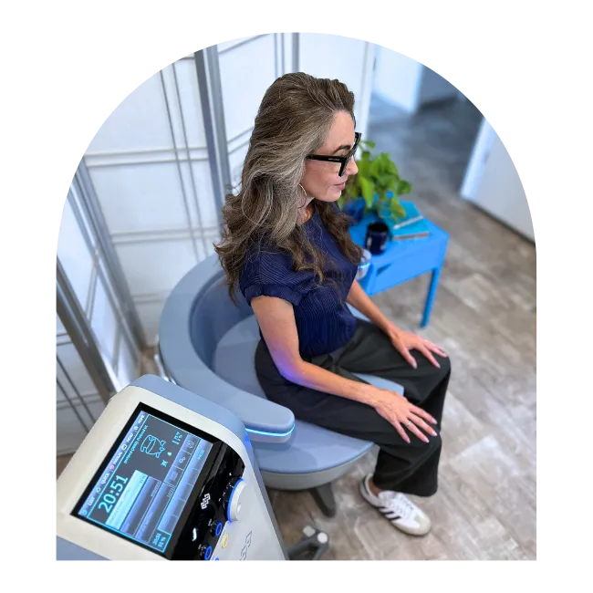 We’ll give you a 10-minute test session on the EMSELLA® so you can feel how it works. Some clients even notice a difference right away. One woman slept through the night without bathroom breaks for the first time in years after just her 10-minute demo.